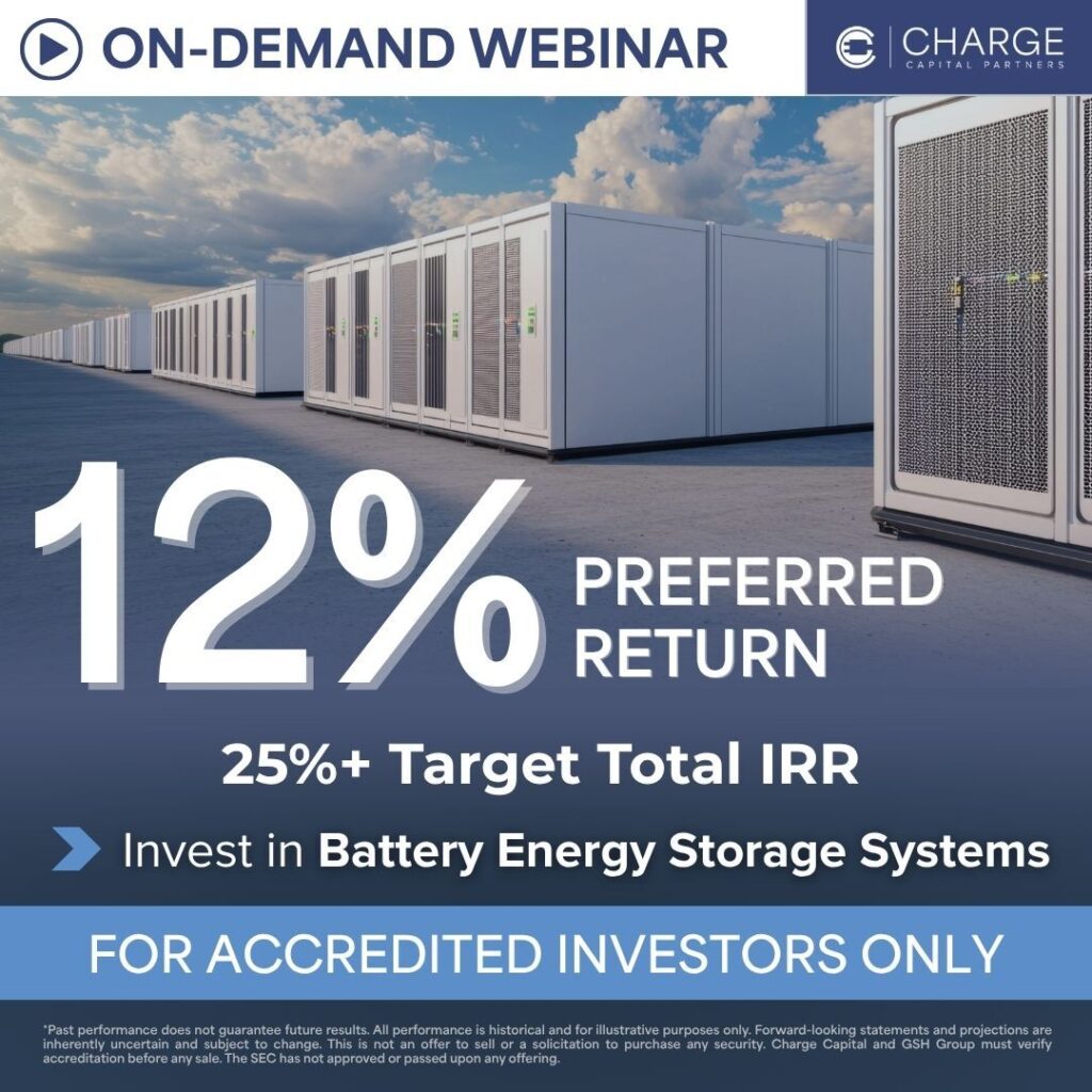 Disclosure: Past performance does not guarantee future results. All performance is historical and for illustrative purposes only. Forward-looking statements and projections are inherently uncertain and subject to change. This is not an offer to sell or a solicitation to purchase any security. All securities are offered only to accredited investors under Rule 506(c). Charge Capital and GSH Group must verify accreditation before any sale. The SEC has not approved or passed upon any offering.